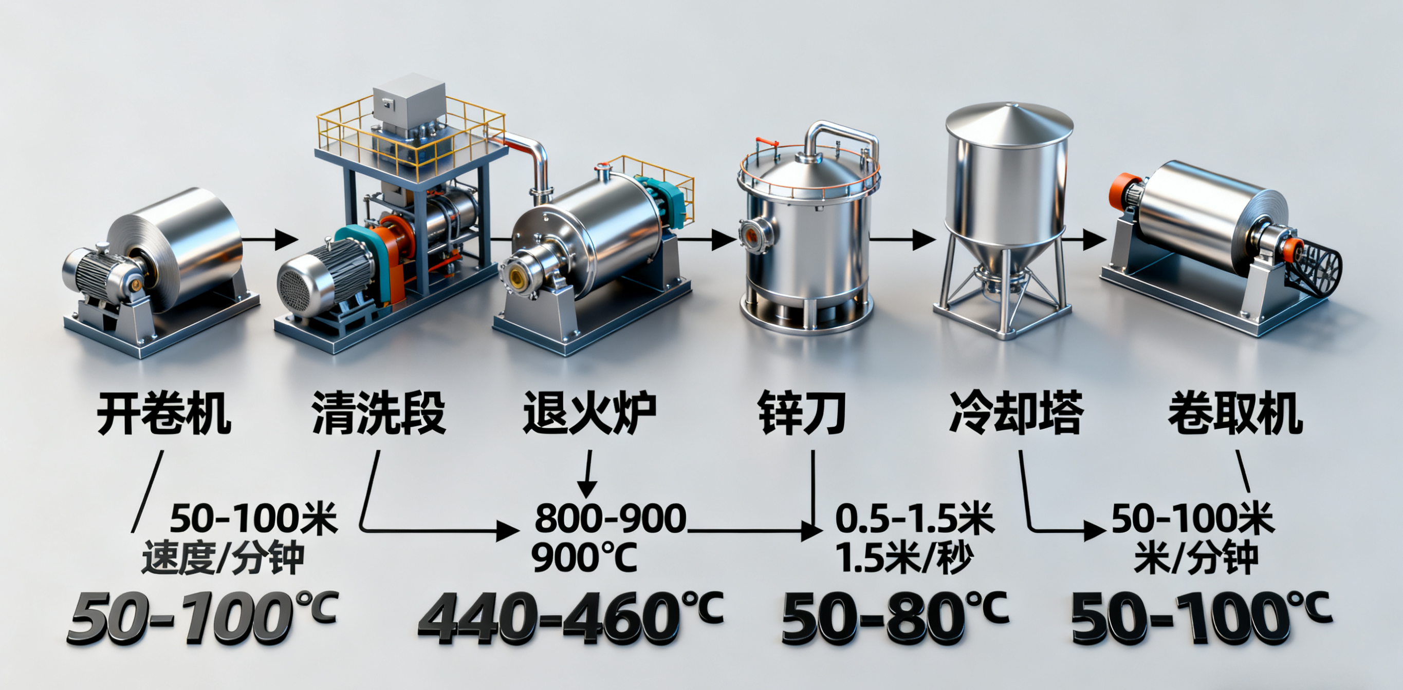 清洗后的基材進入連續(xù)退火爐,在氮氣 - 氫氣保護氣氛下,加熱至 700-800℃,并保溫一定時間。退火處理的目的是消除基材的軋制應力,改善基材的金相組織,同時使基材表面形成一層活性純鐵層,為后續(xù)鍍層與基材的冶金結合創(chuàng)造條件。?